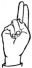 На ћирилици написано САВЕТА ДОМИШЕВАЦ састоји се из 15 слова [?]. Исписано ћириличном једноручном азбуком за глувонеме: